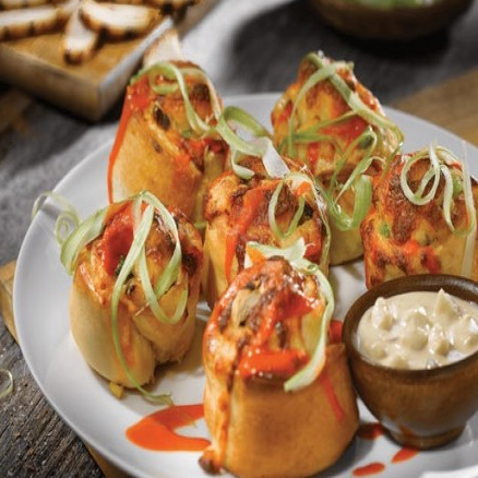 Creamy garlic sauce, Mozzarella, sun dried tomatoes, chicken, diced tomatoes, roasted garlic and fresh spinach tossed in a lemon vinaigrette.