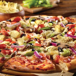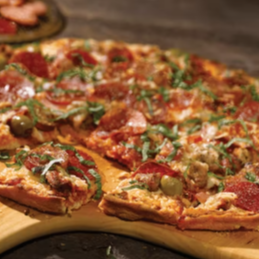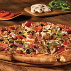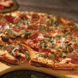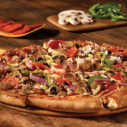 Pepperoni, Italian Sausage, Red Onions, Green Peppers, Black Olives, Sliced Mushrooms, and Mozzarella