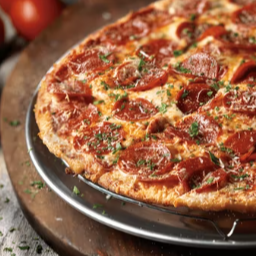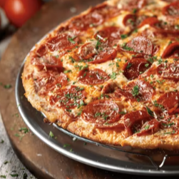 2x the pepperoni with Parmesan cheese, a splash of hot sauce and parsley garnish