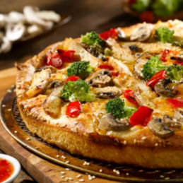 Pepperoni, Sliced Mushrooms, Italian sausage, and roasted garlic.