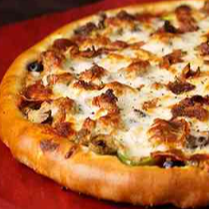 Pizza Sauce, Pizza Cheese, Italian Sausage, Mushrooms, Onions and Green Peppers.
