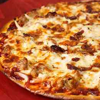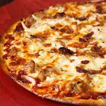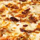 BBQ Sauce, Pizza Cheese, Bacon, Italian Sausage and Onions.