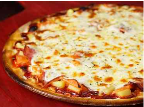 BBQ Sauce, Pizza Cheese, Pineapple, Canadian Bacon and Tomato.