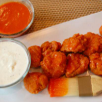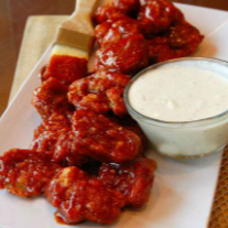Available in Plain, Hot, Mild, BBQ, Garlic Parmesan, Mango Habanero & Sweet Red Chili. With a side of ranch or blue cheese
